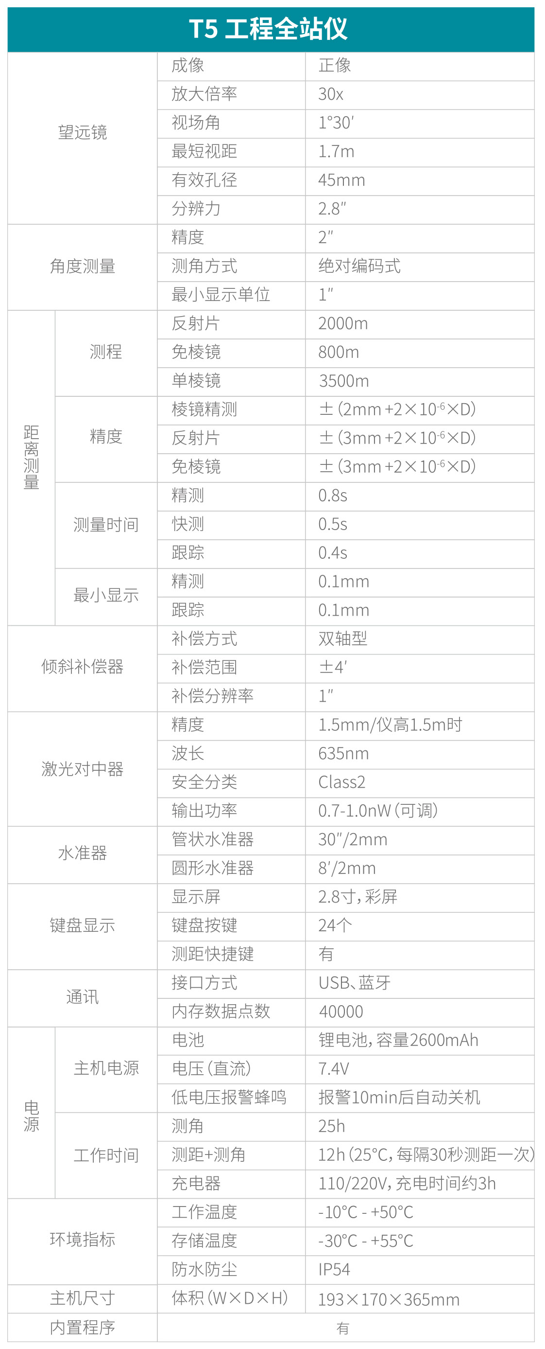 升级R a y EDM 2. 0技术,采用相位法测距原理,100MHz高频率,电子快门切换和多频测尺切换,使T5的测距又快又精准